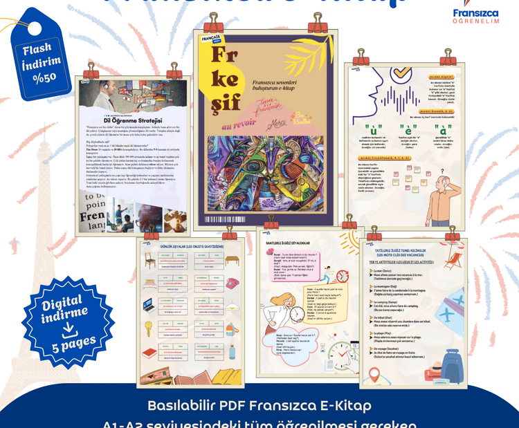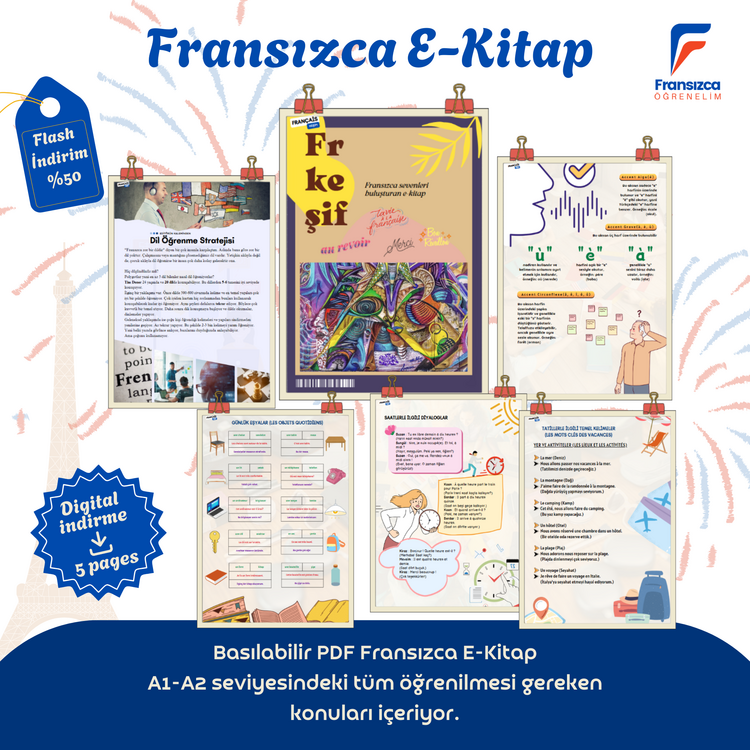Fransızca öğrenmeye yeni başlayanlar için özel olarak hazırlanmış bu e-kitap, A1 ve A2 seviyesine uygun içeriklerle doludur. Temel kelime bilgisi, günlük ifadeler, dilbilgisi kuralları ve pratik egzersizlerle Fransızcayı kolay ve eğlenceli bir şekilde öğrenmenizi sağlar.